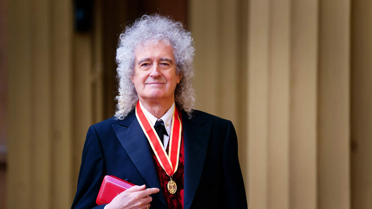 LONDON, ENGLAND - MARCH 14: Sir Brian May after being made a Knight Bachelor for services to music and charity by King Charles III during an investiture ceremony at Buckingham Palace on March 14, 2023 in London, England. (Photo by Victoria Jones - WPA Pool/Getty Images)