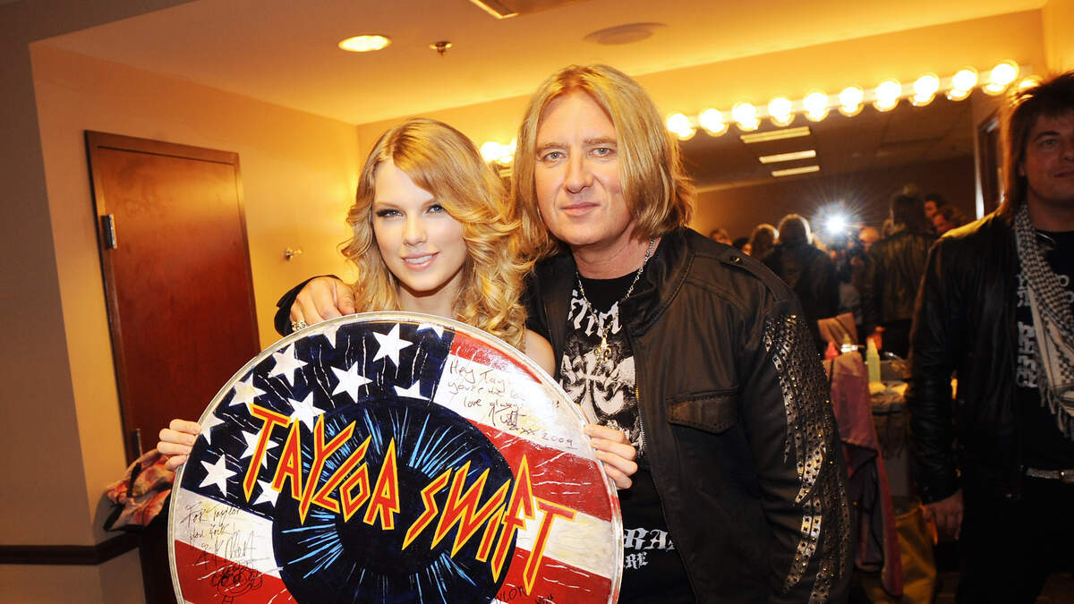 Def Leppard go back 16 years with Taylor Swift, having collaborated with her in 2008 on CMT Crossroads and it was disc that sold well at WalMart! Singer Joe Elliott says, "I don't think anybody could see how big she would become. If you think back to 2008, there was no such thing as what she's accomplished. Sure, there was a mania with The Beatles and the Stones came over, but for people born this century or in the '90s, this is a phenomenon that's never been seen before -- technically bigger than The Beatles and the Stones combined, at least commercially. Joe might have been in the mode of playing up Taylor Swift because she hooked Joe up and his daughter up with tickets to her shows in Dublin.