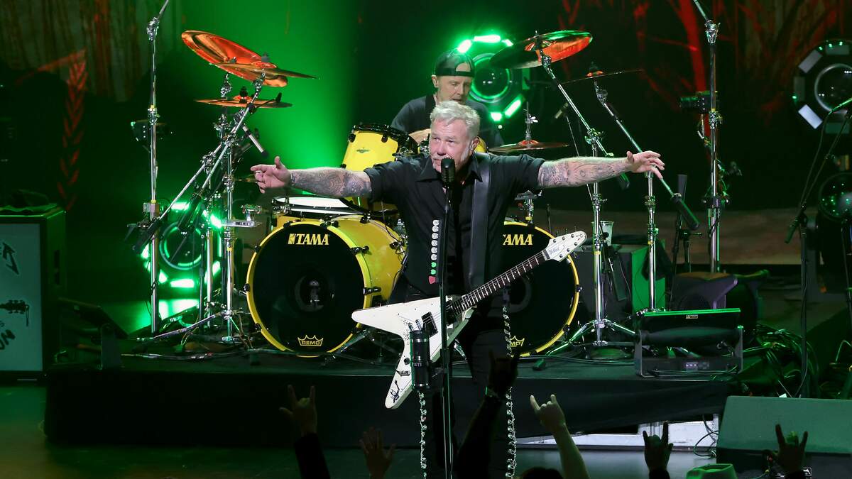 INGLEWOOD, CALIFORNIA - DECEMBER 13: (L-R) Lars Ulrich and James Hetfield of Metallica perform onstage during Metallica's All Within My Hands Foundation Presented by the Helping Hands Concert And Auction 2024 at YouTube Theater on December 13, 2024 in Inglewood, California. (Photo by Kevin Winter/Getty Images)