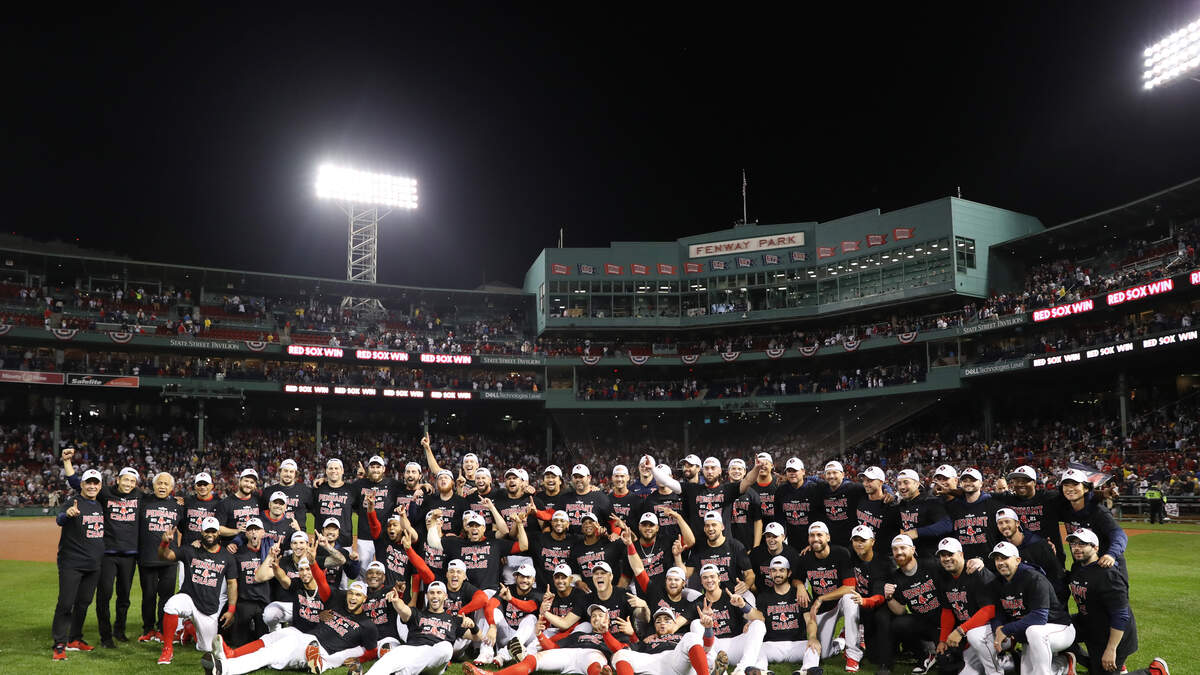 Another nail biter in the ALDS between the Red Sox and Rays ends in another walk-off win for the Sox, this time to close out the series, as the Sox turn their focus now to the ALCS. After a bit of celebrating, of course. (Photo by Maddie Meyer/Getty Images)