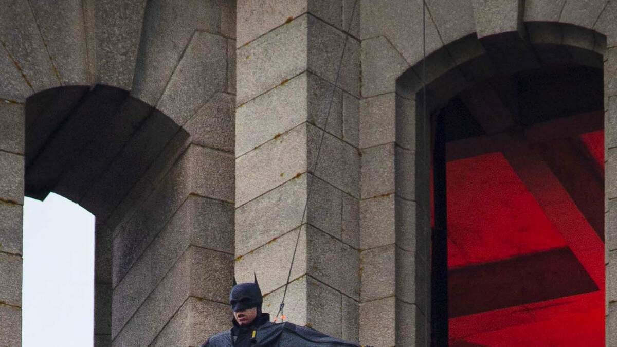 LIVERPOOL, ENGLAND - OCTOBER 15: A stunt man dressed as Batman stands on a ledge near the top of the Liver Building during filming rehearsals for the latest The Batman film on October 15, 2020 in Liverpool, United Kingdom. Filming is taking place all this week amid new Covid regulations in the city. The Batman is an upcoming American superhero film based on the DC Comics character of the same name. Produced by DC Films and distributed by Warner Bros. Pictures, it is a reboot of the Batman film franchise directed by Matt Reeves and starring Robert Pattinson. (Photo by Colin McPherson/Getty Images)Photo: Getty Images