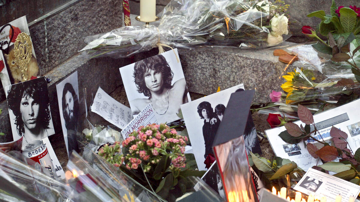 (FILES) - Photo taken on December 8, 2003 in Paris shows photographs and flowers on the grave of Jim Morrison at Pere Lachaise cemetery. It will be 40 years on July 3, 2011 since Jim Morrison was found dead in a bathtub in his Paris apartment, but a visit to his grave finds the cult of the lizard king as alive as ever. That Pere Lachaise is reputedly the most-visited cemetery in the world is due in no small part to the crowds that flock every day to visit Morrison's flower-strewn gravestone. AFP PHOTO / JOEL ROBINE (JOEL ROBINE/AFP via Getty Images)Photo: Getty Images