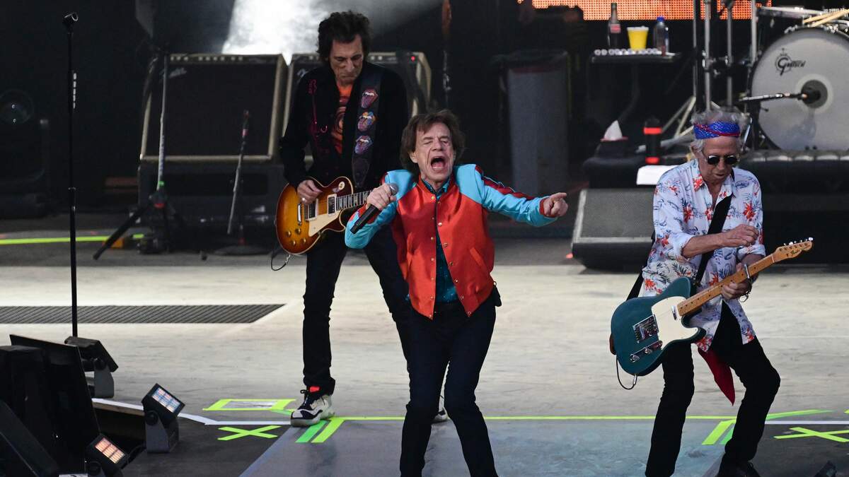 British rock band The Rolling Stones' singer Mick Jagger (C), guitarist Ron Wood (L) and guitarist Keith Richards perform on stage during a concert as part of their 'Stones Sixty European Tour' at the Waldbuehne at Olympiapark in Berlin on August 3, 2022. - RESTRICTED TO EDITORIAL USE (Photo by INA FASSBENDER / AFP) / RESTRICTED TO EDITORIAL USE (Photo by INA FASSBENDER/AFP via Getty Images)Photo: Getty Images