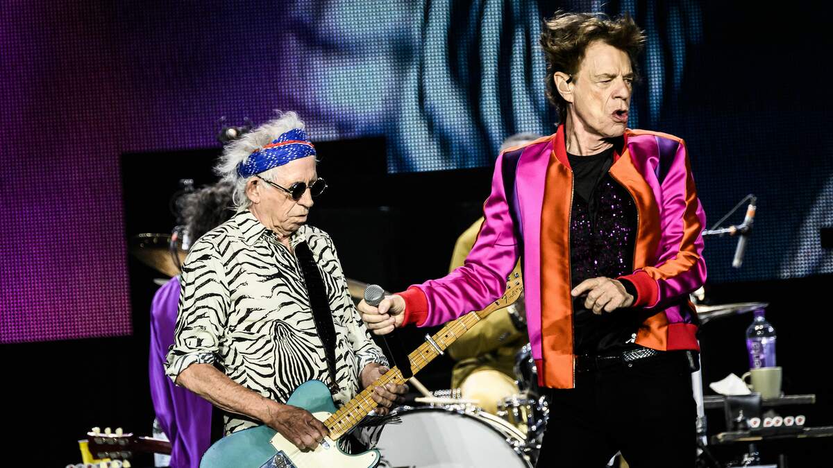 TOPSHOT - British rock band The Rolling Stones' British singer Mick Jagger (R) and British guitarist Keith Richards (L) perform on stage during a concert part of their European Tour in Decines-Charpieu's Stadium, near Lyon, on July 19, 2022. (Photo by JEFF PACHOUD / AFP) (Photo by JEFF PACHOUD/AFP via Getty Images)Photo: Getty Images