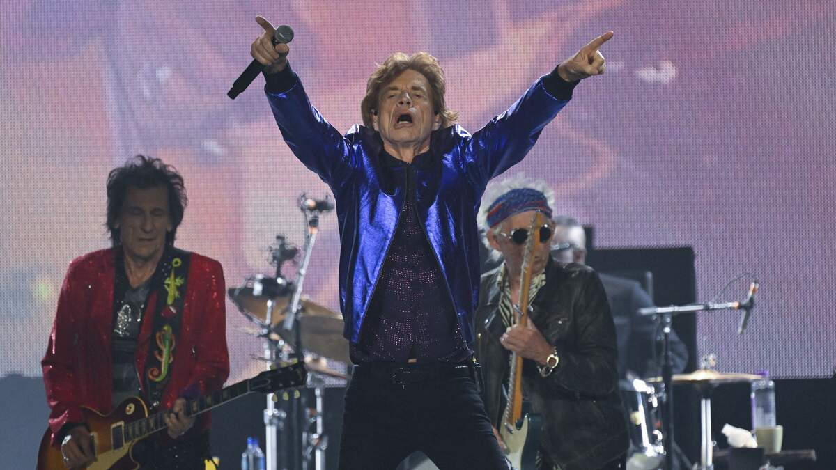 British rock band The Rolling Stones' singer Mick Jagger, guitarists Keith Richards and Ron Wood perform during a concert as part of their 'Stones Sixty European Tour' at the Veltins Arena in Gelsenkirchen, western Germany on July 27, 2022. - RESTRICTED TO EDITORIAL USE (Photo by INA FASSBENDER / AFP) / RESTRICTED TO EDITORIAL USE (Photo by INA FASSBENDER/AFP via Getty Images)Photo: Getty Images