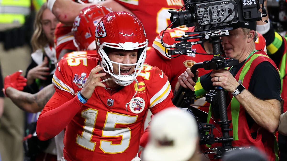 LAS VEGAS, NEVADA - FEBRUARY 11: Patrick Mahomes #15 of the Kansas City Chiefs celebrates after defeating the San Francisco 49ers 25-22 in overtime during Super Bowl LVIII at Allegiant Stadium on February 11, 2024 in Las Vegas, Nevada. (Photo by Steph Chambers/Getty Images)Photo: Steph Chambers / Getty Images Sport / Getty Images