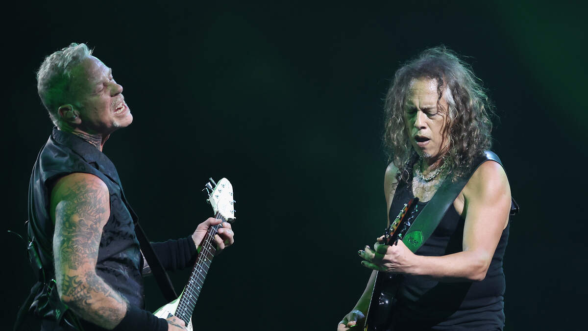 GLENDALE, ARIZONA - SEPTEMBER 01: James Hetfield and Kirk Hammett of Metallica perform at State Farm Stadium on September 01, 2023 in Glendale, Arizona. (Photo by Christian Petersen/Getty Images)Photo: Christian Petersen / Getty Images Entertainment / Getty Images