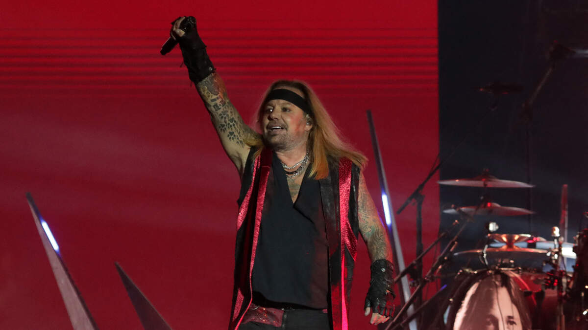 US musician Vince Neil, lead vocalist of Motley Crue, performs during the World Tour, a co-headlining concert tour by rock bands British Def Leppard and US Motley Crue, at Simon Bolivar Park in Bogota, on February 25, 2023. (Photo by Juan Pablo Pino / AFP) (Photo by JUAN PABLO PINO/AFP via Getty Images)Photo: JUAN PABLO PINO / AFP / Getty Images