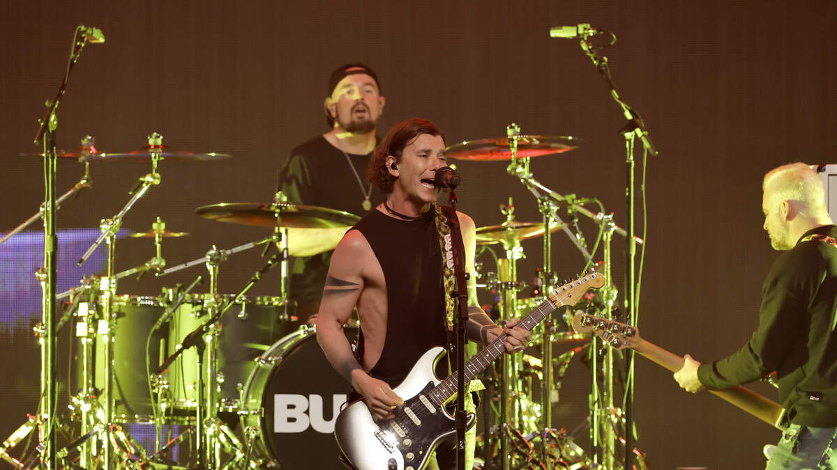 ANAHEIM, CALIFORNIA - JANUARY 13: (FOR EDITORIAL USE ONLY) (L-R) Nik Hughes, Gavin Rossdale and Corey Britz of Bush perform onstage at the 2024 iHeartRadio ALTer EGO Presented by Capital One at the Honda Center on January 13, 2024 in Anaheim, California. (Photo by Kevin Winter/Getty Images for iHeartRadio)Photo: Kevin Winter / Getty Images Entertainment / Getty Images