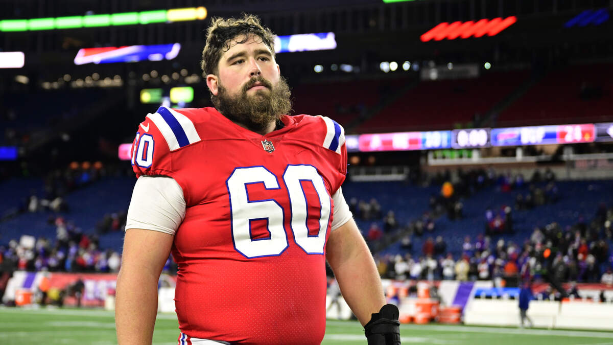 FOXBOROUGH, MA - DECEMBER 01: David Andrews #60 of the New England Patriots reacts after a game against the Buffalo Bills at Gillette Stadium on December 01, 2022 in Foxborough, Massachusetts. (Photo by Billie Weiss/Getty Images)Photo: Billie Weiss / Getty Images Sport / Getty Images