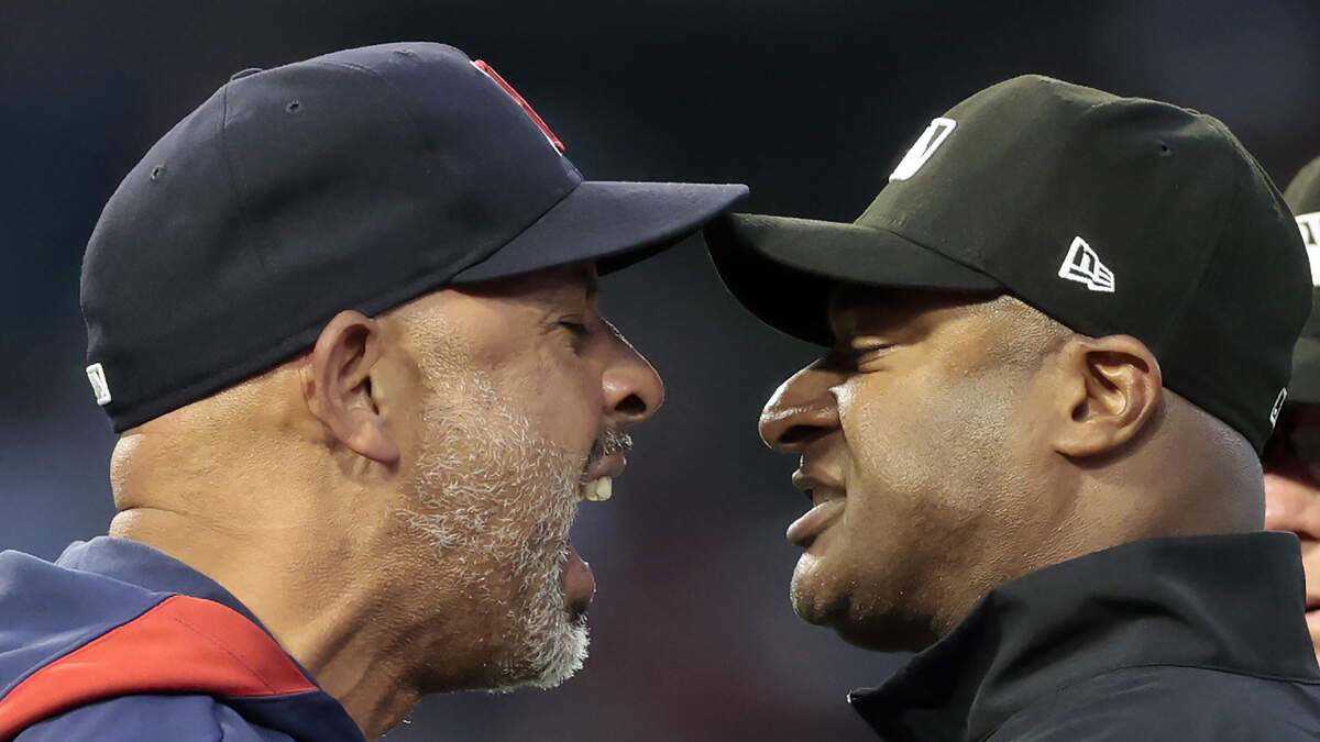 ANAHEIM, CALIFORNIA - JUNE 23: Manager Alex Cora of the Boston Red Sox argues with umpire Alan Porter #64 after being ejected in the fifth inning of play against the Los Angeles Angels at Angel Stadium of Anaheim on June 23, 2025 in Anaheim, California. (Photo by Ronald Martinez/Getty Images)Photo: Ronald Martinez / Getty Images Sport / Getty Images