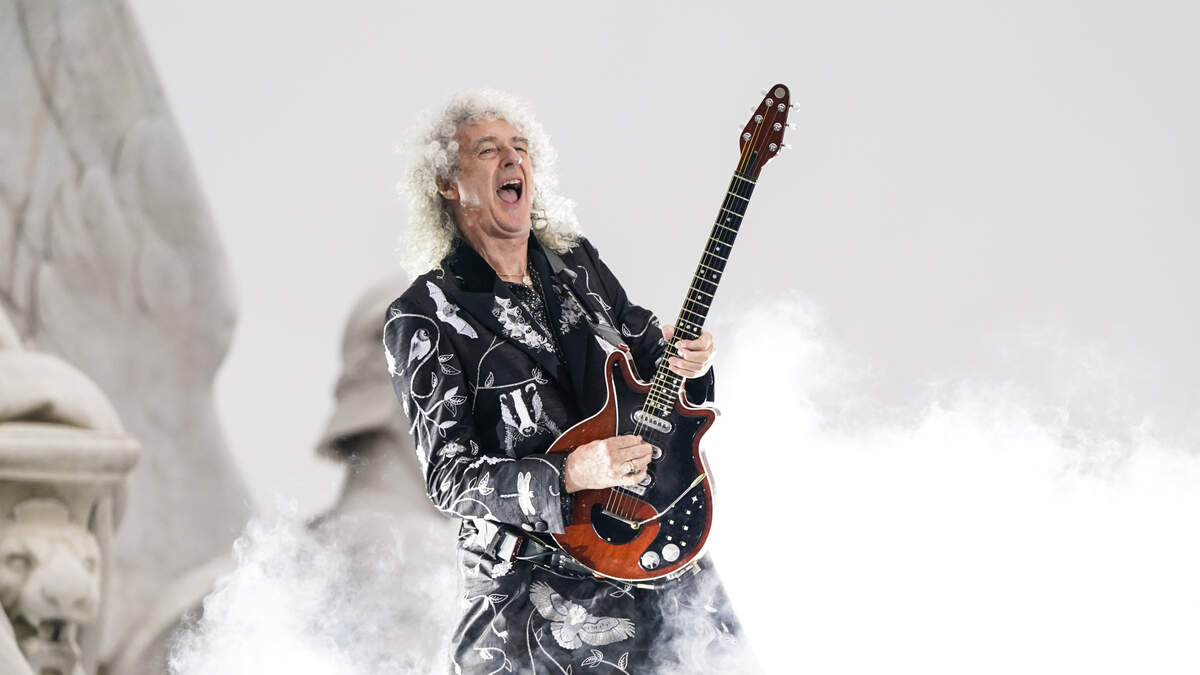 LONDON, ENGLAND - JUNE 04: Brian May of Queen performs during the Platinum Party At The Palace at Buckingham Palace on June 4, 2022 in London, England. The Platinum Jubilee of Elizabeth II is being celebrated from June 2 to June 5, 2022, in the UK and Commonwealth to mark the 70th anniversary of the accession of Queen Elizabeth II on 6 February 1952. (Photo by Alberto Pezzali - WPA Pool/Getty Images)Photo: WPA Pool / Getty Images Entertainment / Getty Images