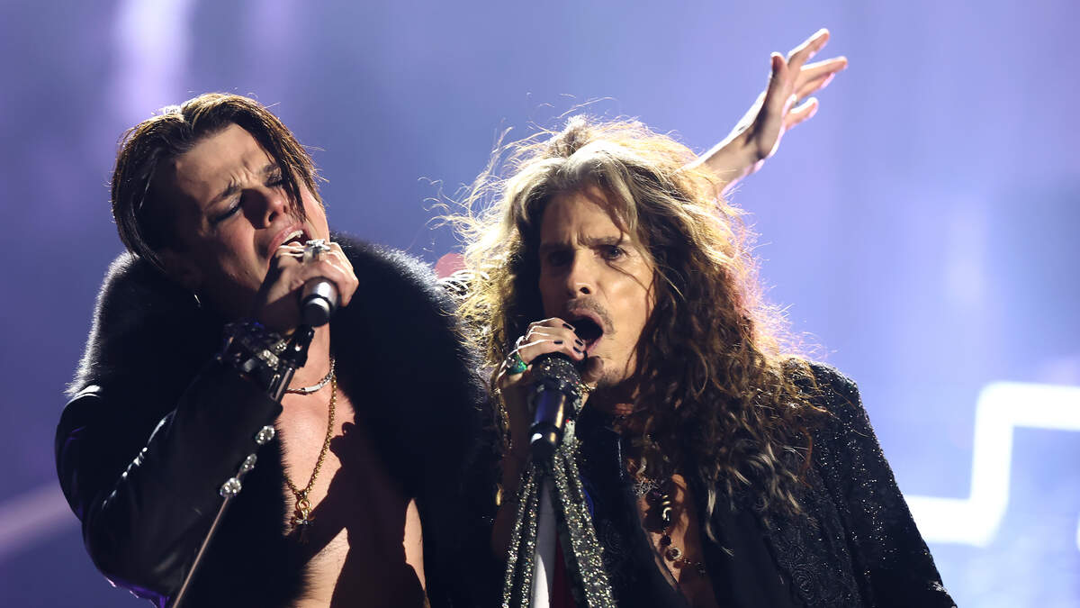ELMONT, NEW YORK - SEPTEMBER 07: Yungblud and Steven Tyler perform during a tribute to Ozzy Osbourne at the 2025 MTV Video Music Awards at UBS Arena on September 07, 2025 in Elmont, New York. (Photo by Arturo Holmes/Getty Images for MTV)Photo: Arturo Holmes / Getty Images Entertainment / Getty Images