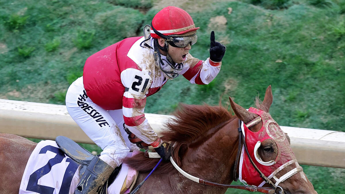 LOUISVILLE, KENTUCKY - MAY 07: Jockey Sonny Leon reacts after Rich Strike wins the 148th running of the Kentucky Derby at Churchill Downs on May 07, 2022 in Louisville, Kentucky. (Photo by Carmen Mandato/Getty Images)Photo: Getty Images