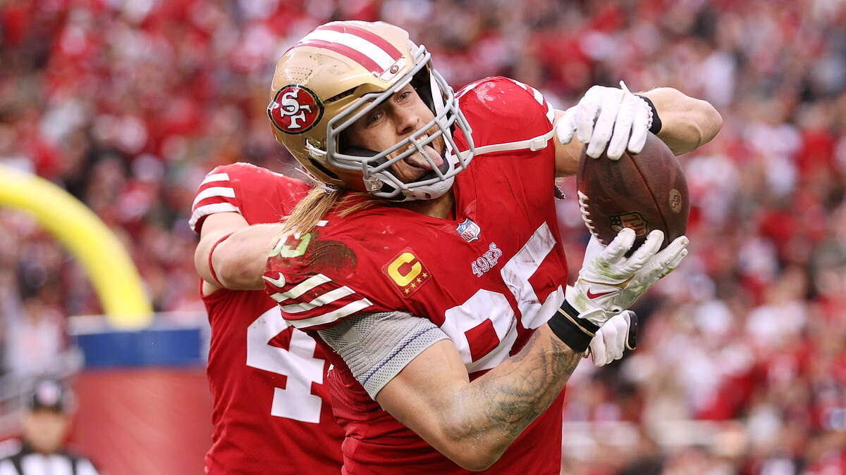 SANTA CLARA, CALIFORNIA - JANUARY 08: George Kittle #85 of the San Francisco 49ers celebrates after scoring a touchdown during the third quarter against the Arizona Cardinals at Levi's Stadium on January 08, 2023 in Santa Clara, California. (Photo by Ezra Shaw/Getty Images)Photo: Getty Images