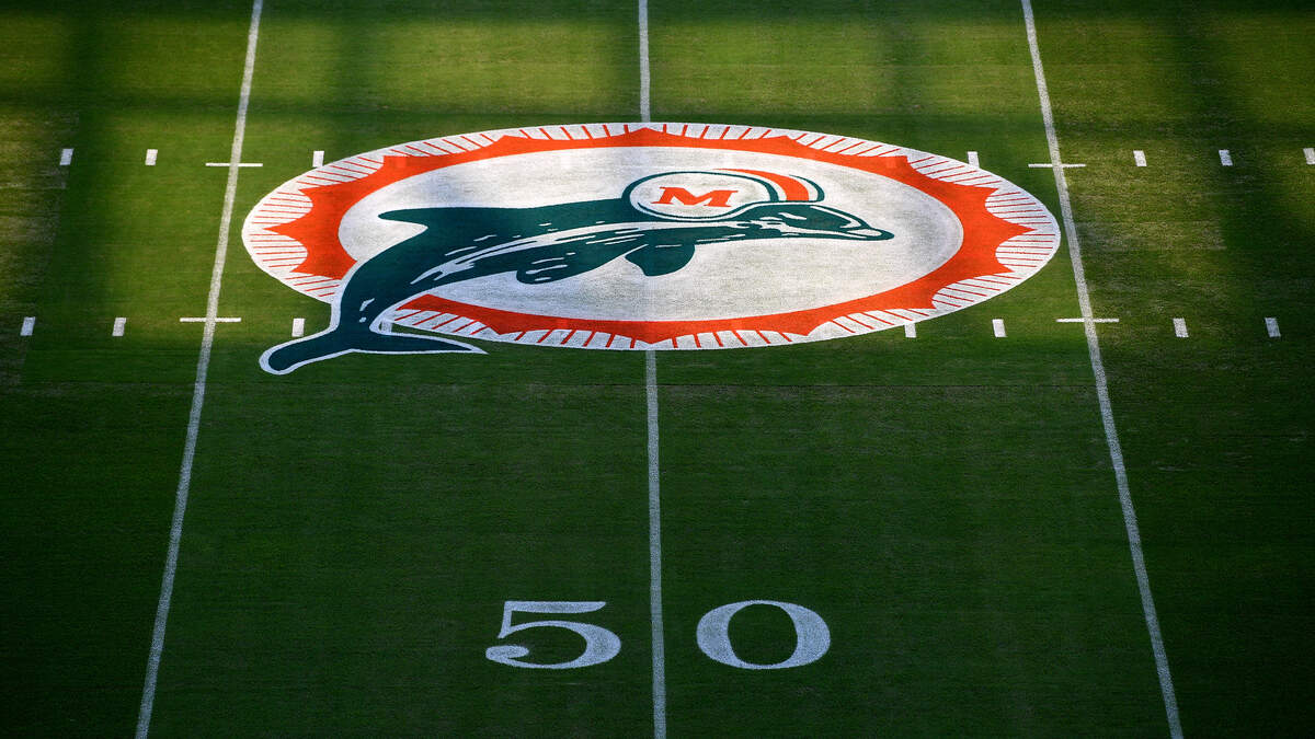 MIAMI GARDENS, FLORIDA - NOVEMBER 15: A view of the midfield logo prior to the game between the Los Angeles Chargers and the Miami Dolphins at Hard Rock Stadium on November 15, 2020 in Miami Gardens, Florida. (Photo by Mark Brown/Getty Images)Photo: Mark Brown / Getty Images Sport / Getty Images