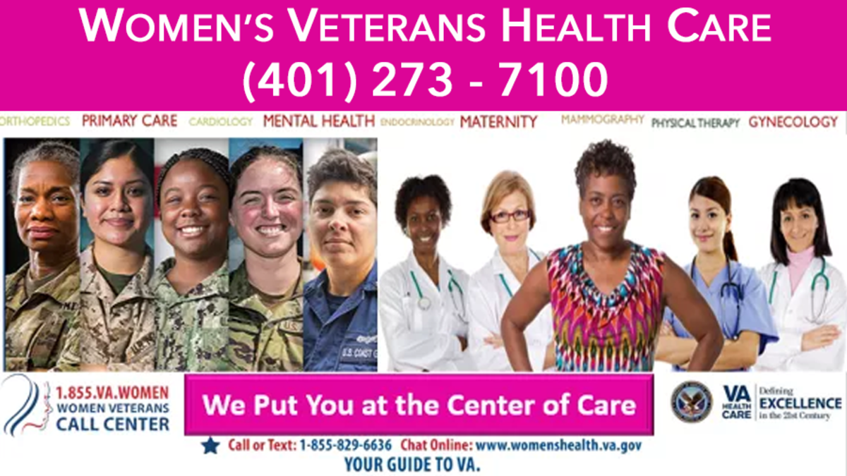At the VA Providence Healthcare System, our mission is to make EVERY Veteran feel welcome and safe with easy access to the best healthcare available. Providence VA’s Women Veterans Health program provides a single location for gender specific care including gynecology, ultrasound, mammography, bone density screening, maternity, childbirth education, postpartum support, and pelvic floor physical therapy as well as meeting general physical, mental health and vaccination needs such as free COVID and Flu vaccinations. The Providence VA also provides access to alternative care such as yoga, Qigong, meditation, breathing exercises and other alternative care options. Many services can even be done virtually and or through our patient portal called My Health-e-Vet where you can schedule appointments, check lab results, order scripts, talk with your provider, and more. Click here to link directly to Women Veterans Health Care.